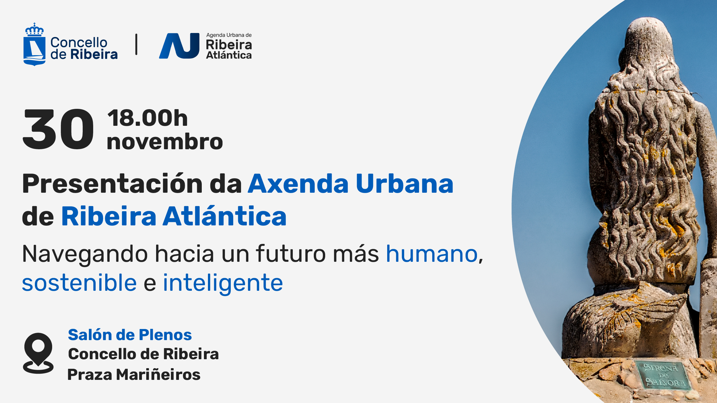| |  |  |  |  |  | |  | | |  |  | | El Concello de Ribeira presentará su Agenda Urbana el próximo miércoles, 30 de noviembre. El acto tendrá lugar a las 18:00h y será una oportunidad para que la ciudadanía pueda realizar sus aportaciones para construir la Ribeira del futuro.   El proyecto se estructura en torno a conseguir una Ribeira más sostenible, digital y humana, basándose en el carácter atlántico del municipio.    Os daremos toda la información en nuestras redes sociales. |  |  |