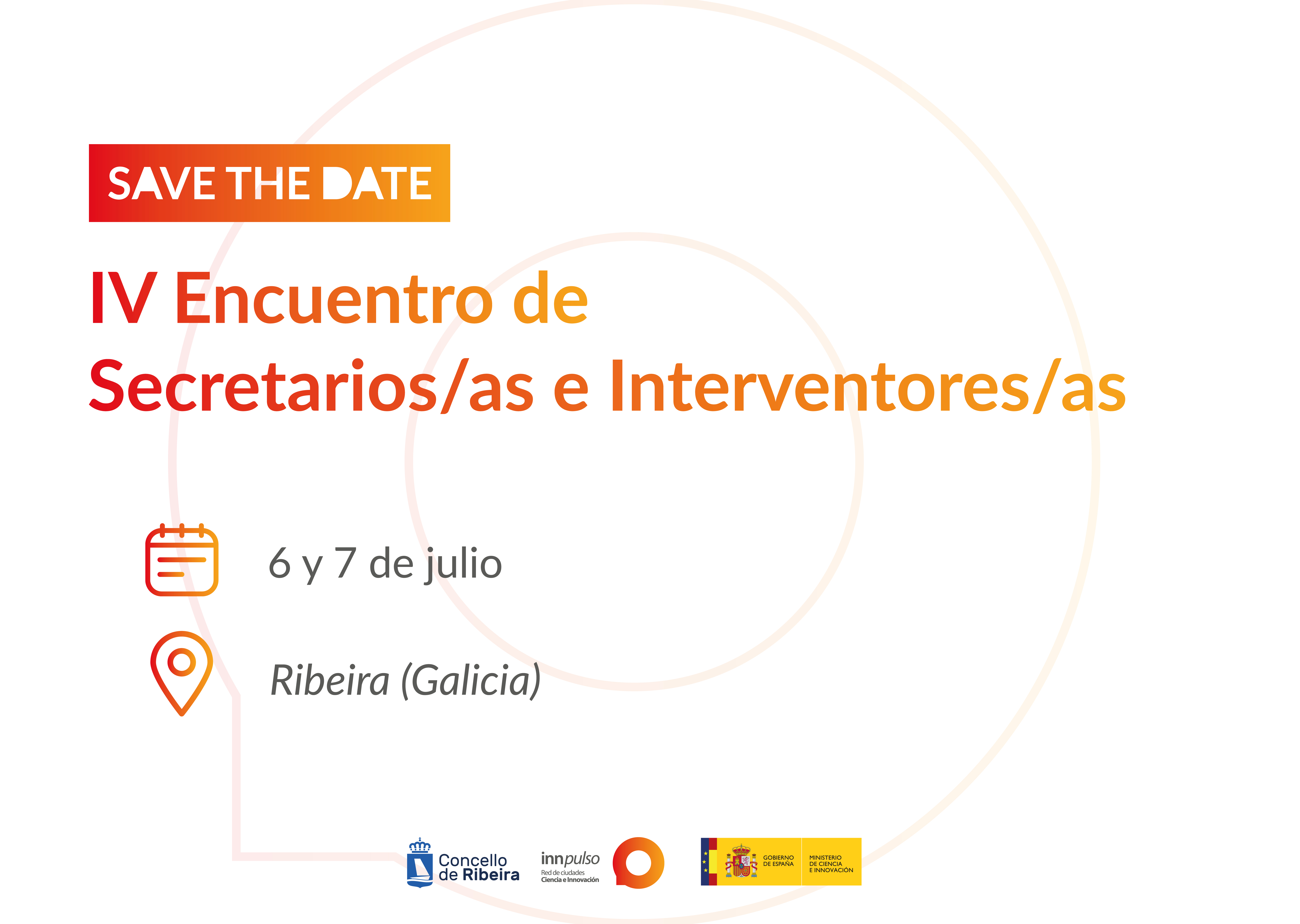 |  | | Los días 6 y 7 de julio en Ribeira, se celebrará la cuarta edición del encuentro de Secretarios/as e Interventores/as. Este encuentro pretende reunir a secretarios/as, interventores/as, así como al personal de las áreas jurídicas, compras y contratación entre otras de los Ayuntamientos Innpulso, para reflexionar sobre el papel de la Compra Pública de Innovación (CPI) y otras herramientas de gestión de la innovación en las Administraciones Locales tales como los Sandboxes urbanos.   A través de esta sesión, la Red Innpulso quiere continuar trabajando y colaborando en la definición de nuevos proyectos y modelos que permitan que las ciudades de la Red tengamos conocimiento de estas herramientas y, por ende, más opciones de participar en proyectos de innovación.   Para asistir será necesario realizar la inscripción (tanto para la modalidad presencial como online) a través del formulario habilitado para ello. |